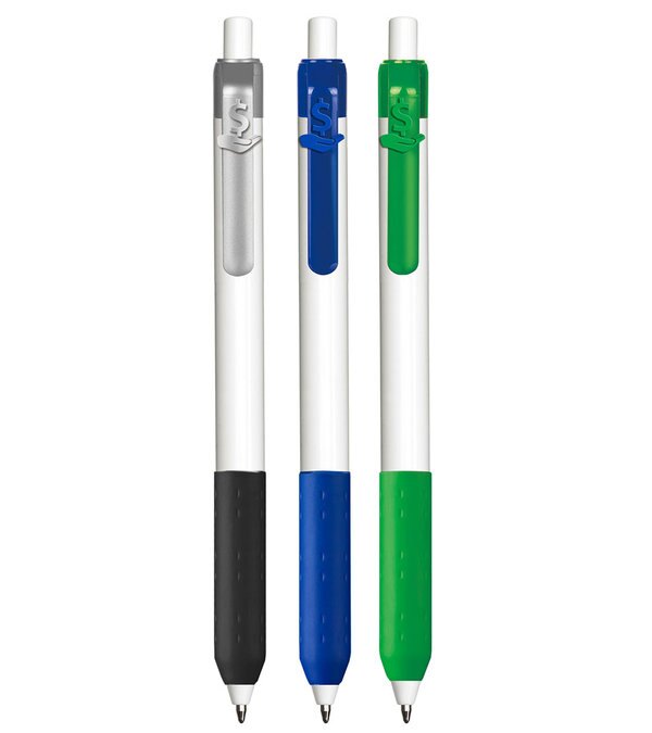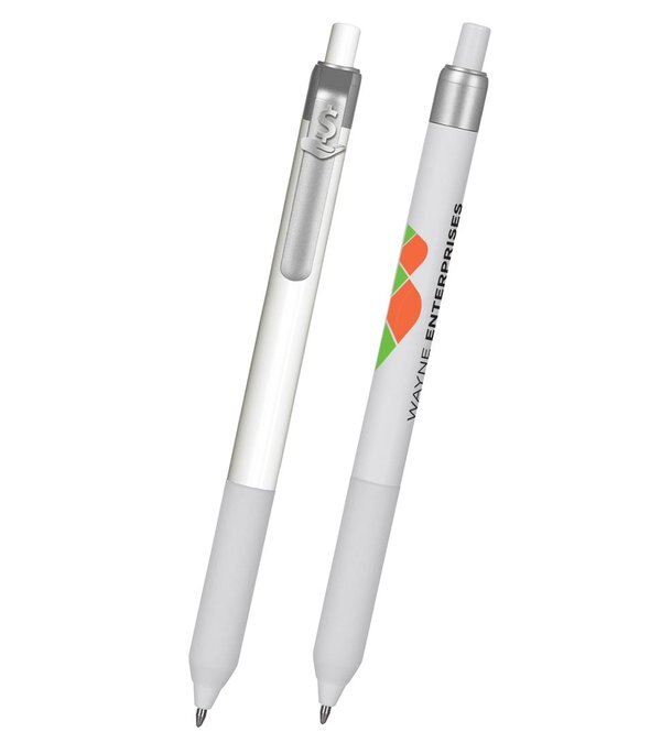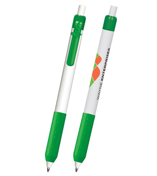The Alamo White Barrel Pen with Dollar Clip is a fun and eye-catching pen, perfect for any financial brand. The click-action retractability makes it easy to write with one hand and the soft grip makes it comfortable to hold. Complete with a dollar sign accent on the clip, this pen makes a great giveaway for trade shows and fairs.